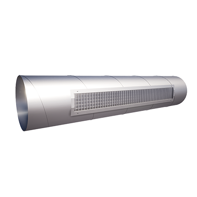 Gegalvaniseerd stalen kanaalrooster voor toevoer en afvoer van gekoelde en verwarmde lucht, in o.a. magazijnen, werkplaatsen, winkels, e.d. Het rooster kan rechtstreeks op een rond kanaal worden gemonteerd. De schoepen kunnen met de hand individueel worden ingesteld voor het bereiken van een optimale luchtverdeling in de ruimte. Beschikbaar met schuin gemonteerde schuifklep.