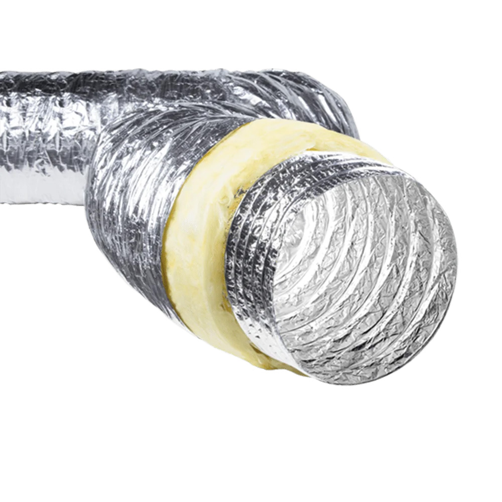 Het is vervaardigd uit meerlaags aluminium en polyester versterkt met hooggespannen harde staaldraad, geperforeerd en omwikkeld met een barrière, omgeven door glaswolisolatie en een aluminium dampscherm.
